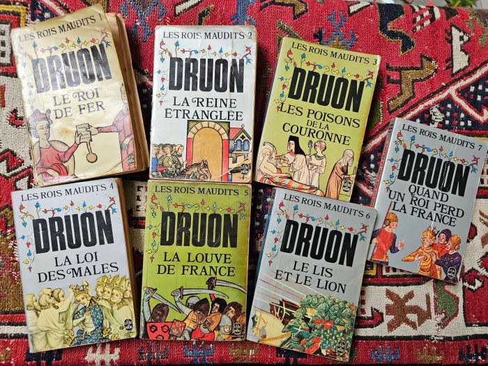 George R. R. Martin costuma mencionar que entre suas inspirações estão os tomos do romance histórico Os reis malditos, de Maurice Druon. Criança, eu adorava os sete livros de Druon sobre o rei Filipe IV da França e seus parentes. Sua forte popularidade no mundo francófono devia-se em parte à adaptação em uma série de sucesso na televisão. Eu traía Emma Peel — ou Diana Rigg — e suas botas com a linda e ingênua rainha Clemência da Hungria, fadada ao sofrimento. Meus exemplares, publicados nas edições “Livre de Poche”, foram sucessivamente adquiridos no supermercado em Bruxelas, quando eu acompanhava minha mãe e lhe pedia mais um volume, tendo terminado a leitura do anterior.
