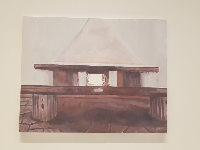 Como foi pintada em 2015, eu não a vira em 2011 em Bruxelas. No vídeo sobre a exposição disponível na página do Palazzo Grassi, Tuymans diz que, se o quadro — pertencente a Mimi Haas, que vive em São Francisco e é viúva de um dos herdeiros da Levi Strauss — não pudesse ter sido cedido para a exposição, ele talvez pintasse nova versão, por causa de sua importância como “significante”. Trata-se de uma simples chaminé, mas carregada de numerosas conotações culturais, históricas e metafóricas. É a chaminé da sala de estar da casa de Curzio Malaparte na ilha de Capri. Malaparte fala nela, rapidamente, em La Pelle, livro lançado em 1949 que empresta seu título à mostra de Luc Tuymans e no qual, como em uma obra anterior, Kaputt, o escritor mistura realidade e ficção. Os dois livros narram situações em parte imaginárias, dentro de eventos bem reais — a II Guerra Mundial em Kaputte, no caso de La Pelle, o período imediatamente posterior à libertação de Nápoles pelas forças aliadas em 1943. Malaparte descreve a decadência moral dos napolitanos, de que participam alguns soldados e oficiais estrangeiros, enquanto outros mantêm a retidão. Mostra que a população, após a guerra, desejava sobreviver a todo custo, sem considerações de princípios, tendo como único objetivo salvar a própria pele. Malaparte e Tuymans revelam ambos a corrupção moral por baixo da superfície — pele no caso do italiano, tela no caso do belga.