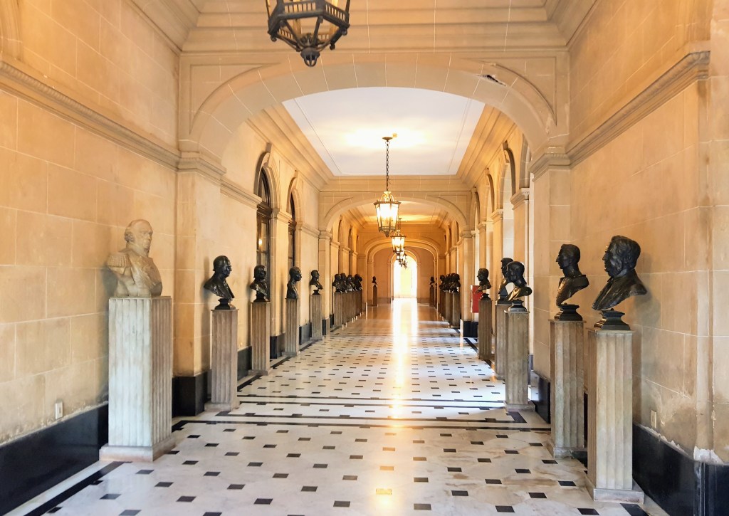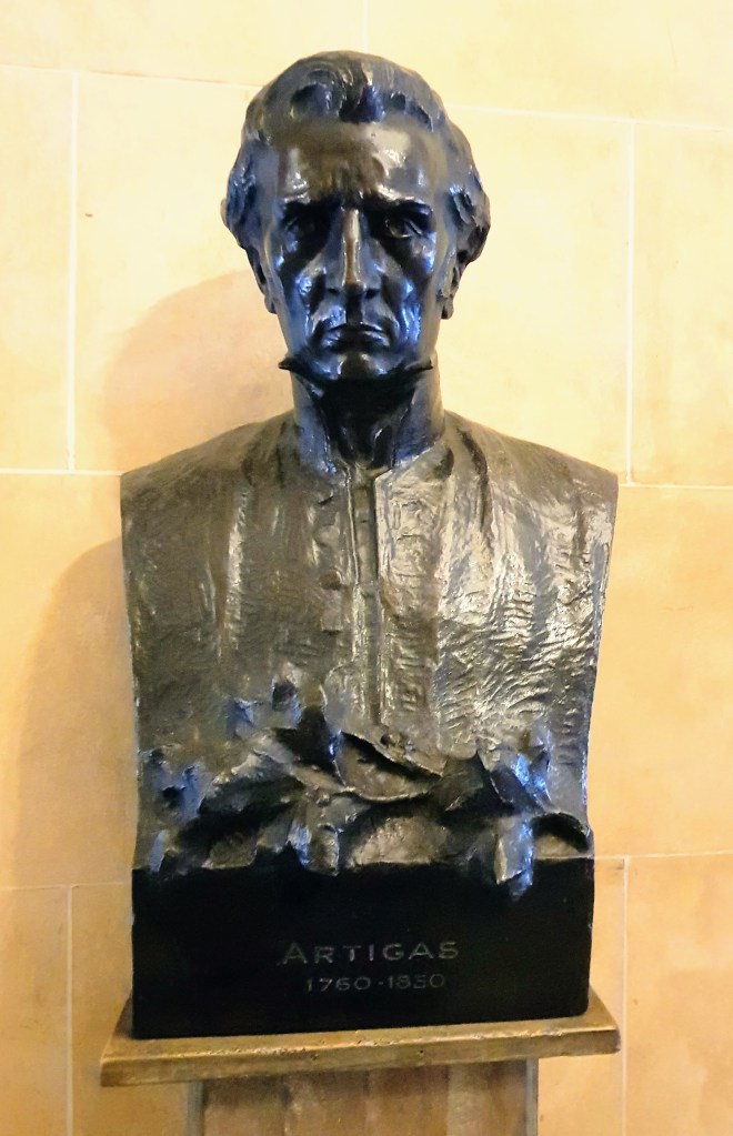 Uma palavra sobre a galeria de próceres americanos. Guardei no celular fotos dos bustos de George Washington, James Monroe, Antonio José de Sucre e José Artigas. Este último é, artisticamente falando, excelente. Destaca-se dos demais, e por isso o escolhi para o álbum de fotografias. Os quatro bustos, porém, representam algo mais. Lembram etapas da minha vida, Montevidéu na adolescência, Washington e Quito na idade adulta.