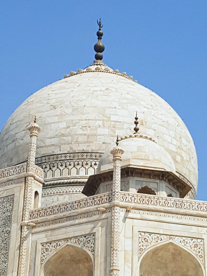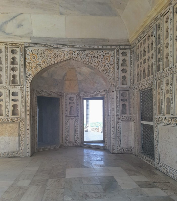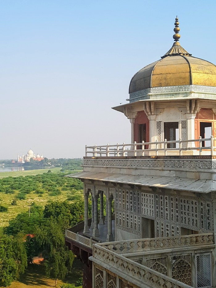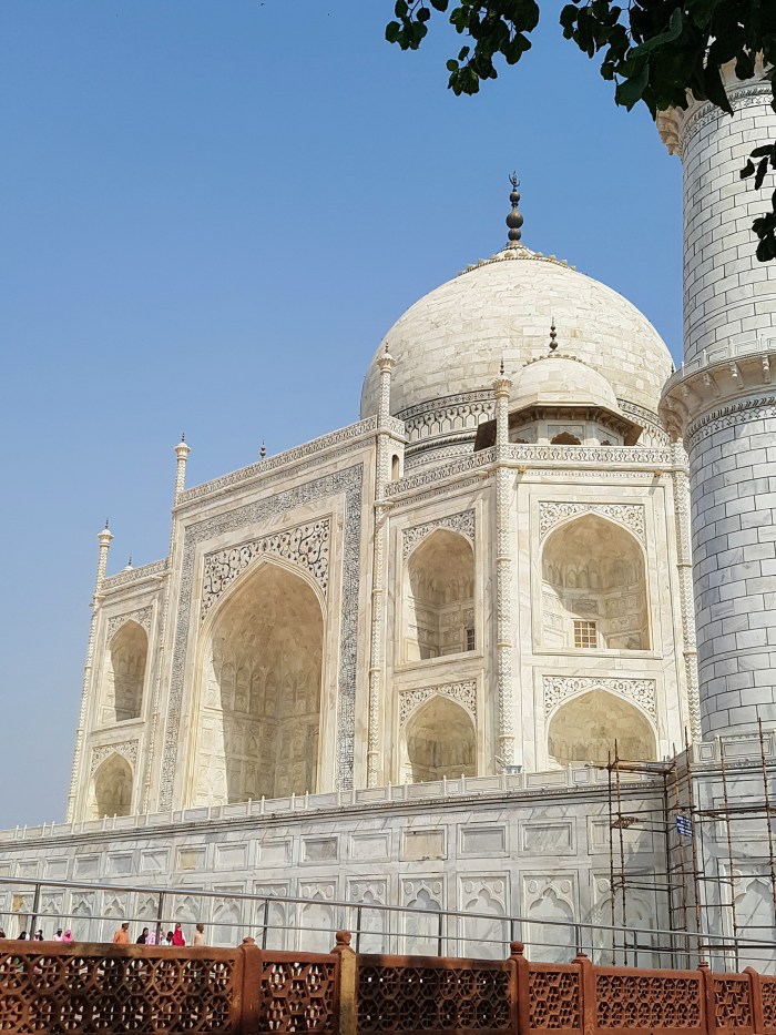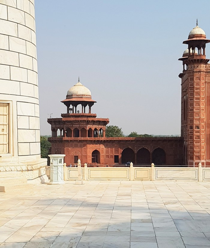 Como o mundo inteiro sabe, o mausoléu em mármore branco, construído entre 1632 e 1653, à beira do sagrado rio Yamuna, por ordem do quinto soberano do Império Mogol, Xá Jahan, abriga a tumba de sua mulher predileta, Mumtaz Mahal. Em Vislumbres de la India, Octavio Paz apenas menciona o mausoléu. Fala muito mais de seu hotel em Mumbai, chamado Taj Mahal, sobre o qual, entre outras coisas, diz: “Es real y es quimérico, es ostentoso y es cómodo, es cursi y es sublime“. Terá o poeta, ao contrário de Cecília Meireles, sentido a mesmo inibição que eu, evitado descrever um monumento conhecido universalmente? Sobre o reinado de Xá Jahan, Octavio Paz menciona que “Fue un período de esplendor artístico. Sus últimos años fueron de pena y desolación”, em grande parte por causa da perda de Mumtaz Mahal.