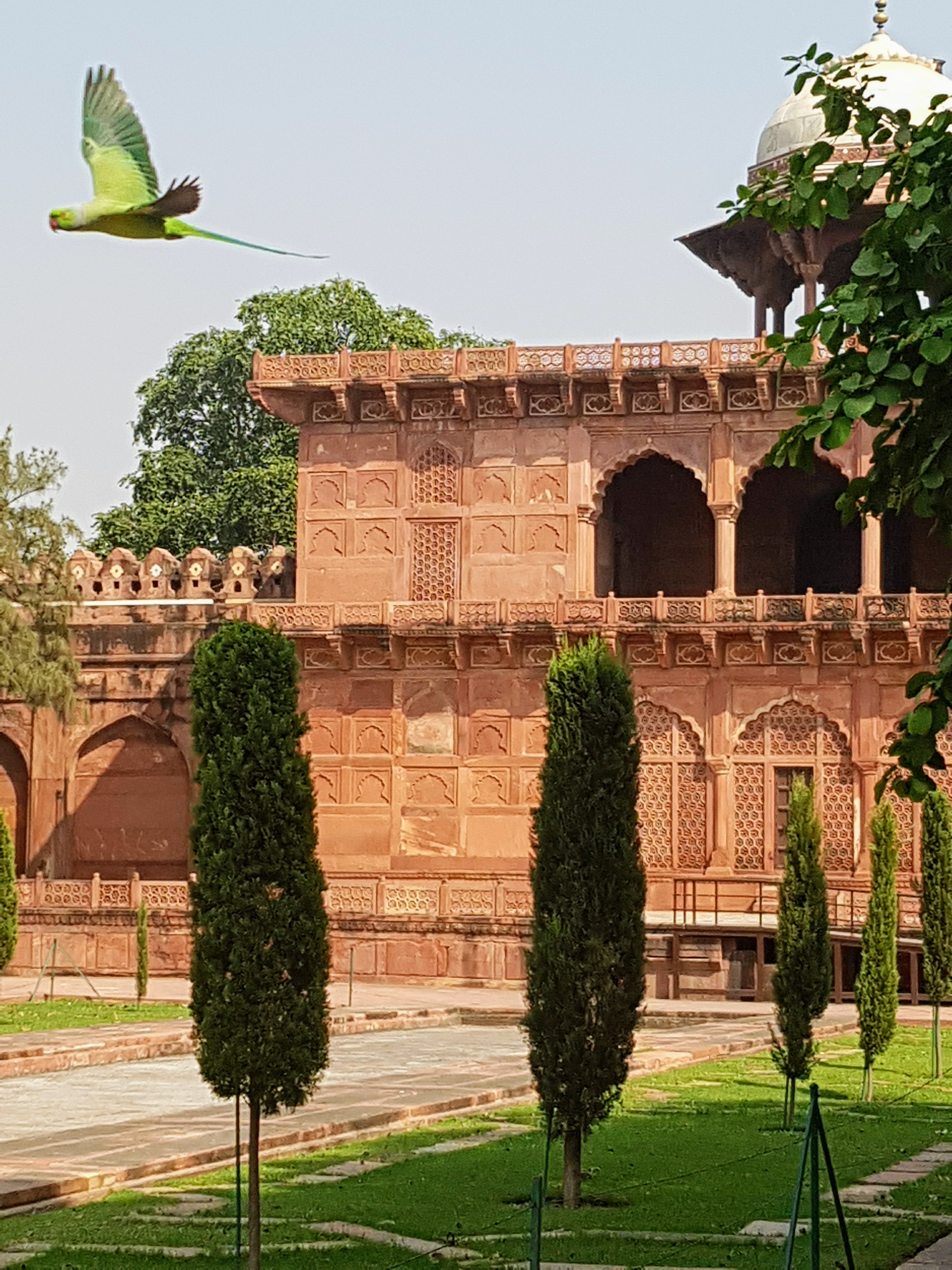 Convidei Laura, uma prima de Juiz de Fora que na época morava em Nova Delhi, para ir a Agra comigo. Ela tudo organizou. Contratou um motorista, em meu nome, por intermédio de uma agência de turismo; ele nos apanhou de madrugada em seu carro. Veio conosco, também, um hóspede de Laura, que por acaso fora meu aluno no Instituto Rio Branco.
