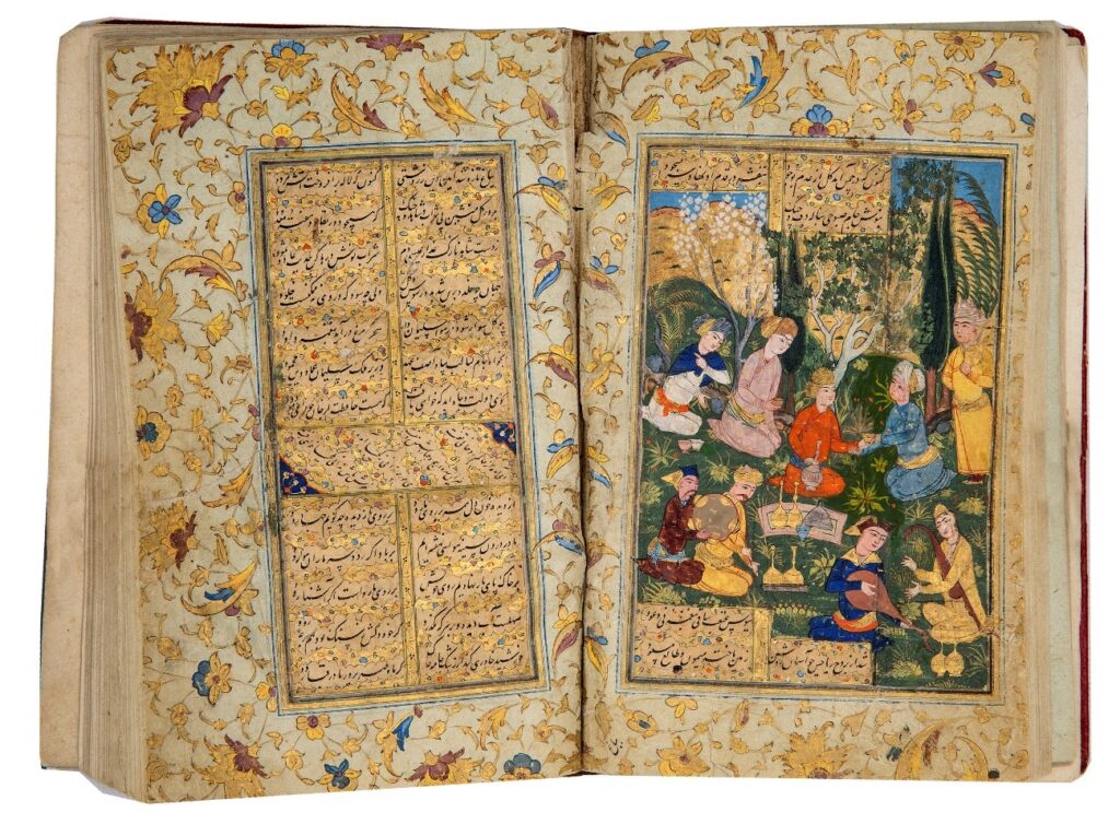 Em minha visita mais recente, admirei o Divã de Hafiz — compilação dos seus poemas — copiado, em 1613, na Pérsia, por Muhammad Qasim Shirazi. Ficarei sem saber que poema é ilustrado pela iluminura na página em que o manuscrito é exposto aberto no museu. A imagem mostra um jardim, e nele parecem reinar a harmonia e a sociabilidade.