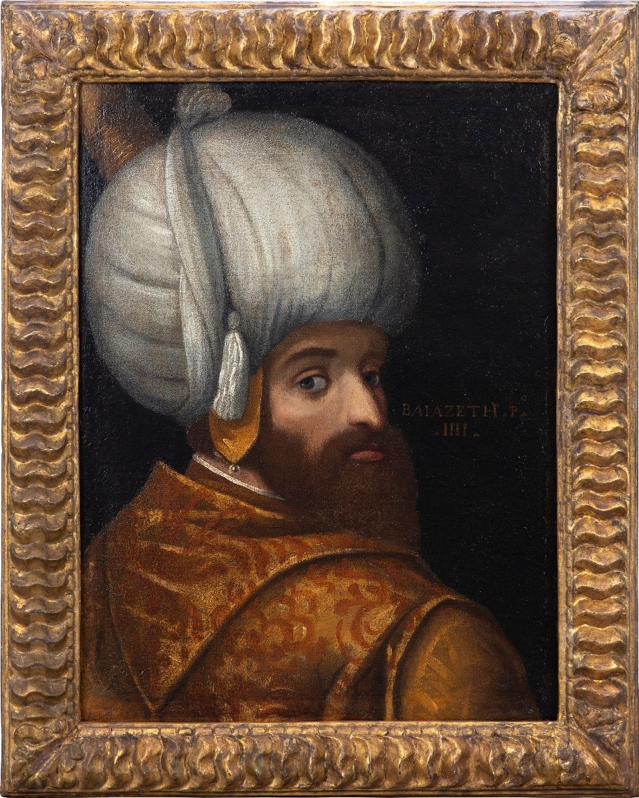A capa do catálogo da exposição no British Museum é um quadro de cerca de 1580 por um seguidor de Veronese retratando Bajazeto I. Esse sultão otomano, bisavô de Maomé II, o Conquistador, foi derrotado em batalha por Tamerlão, antepassado dos imperadores mogóis. Na peça Tamburlaine, que Christopher Marlowe escreveu em 1587 e que inspiraria quatro séculos mais tarde um bom poema de Borges, Bajazeto I nos aparece mantido dentro de uma jaula, prisioneiro de Tamerlão, obrigado a comer os restos de comida de seu inimigo. Indômito, ofende, em toda oportunidade, o seu algoz e se suicida — como ele próprio anuncia, em um verso de sua última fala: “Since other means are all forbidden me” — da única maneira acessível a quem está preso em uma jaula. Marlowe indica, logo após a última fala de Bajazeto: “He brains himself against the cage”.