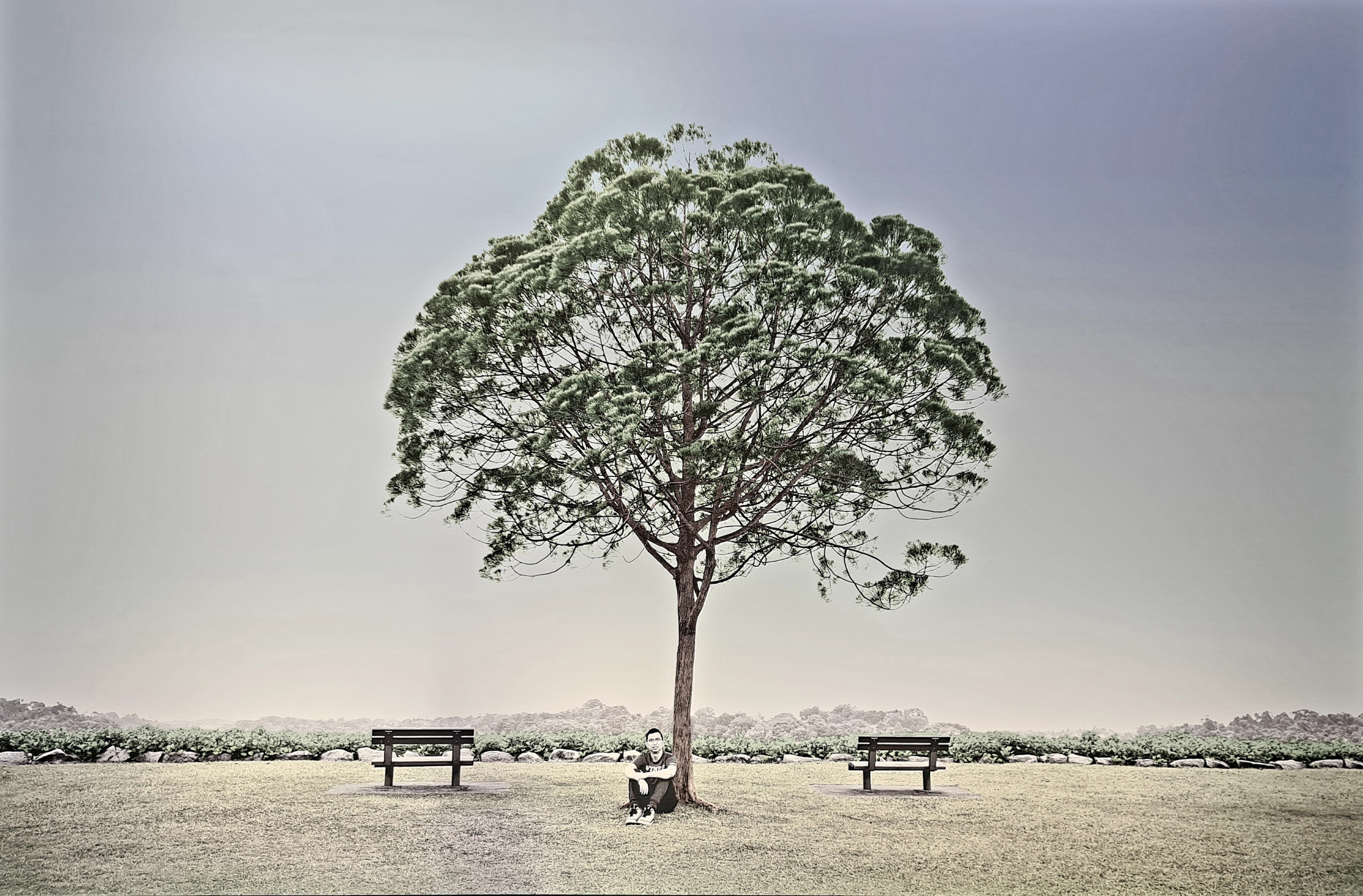 A foto mais simétrica e despojada é a de uma casuarina conhecida como “The Wedding Tree”, onde recém-casados gostam de ser retratados. Sentado ao pé da bela árvore solitária, vemos o fotógrafo especializado em casamentos que já registrou ali mais de cem retratos de jovens recém-casados.