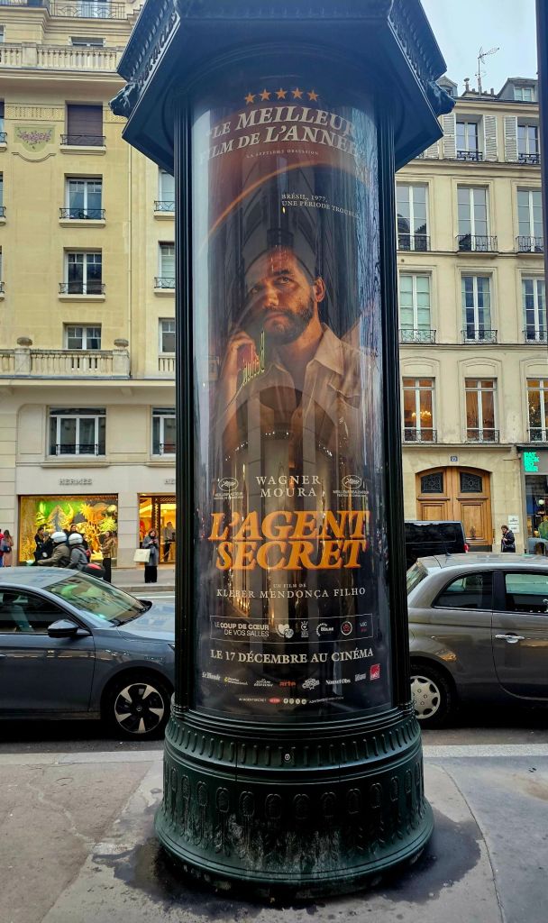 Em Paris, pouco antes do Natal, minha mulher e eu começamos a esbarrar em Wagner Moura na rua por toda parte. Aonde quer que fôssemos, lá estava ele. A afirmação não é delirante e reflete a verdade. Só não deve ser tomada de maneira absolutamente literal. O que víamos não era o ator em carne e osso, mas o pôster promovendo a próxima chegada de O agente secreto aos cinemas da capital.