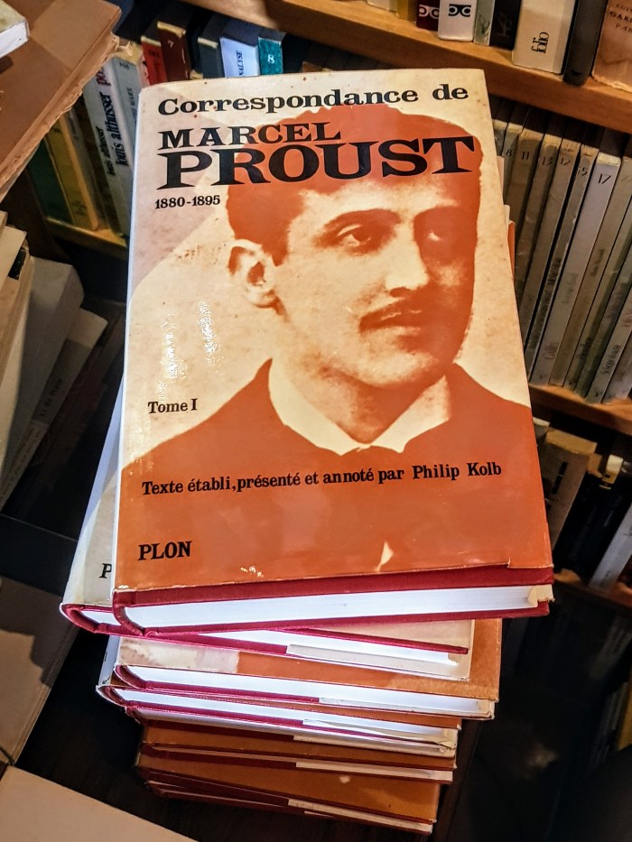 Na Alexandria, o livreiro é prestativo, mas discreto. Deixa-me à vontade, no espaço pequeno. Os preços são honestos. Uma vez, quis mostrar o sebo a um primo português, o escritor e biógrafo José Norton. Este me convenceu a comprar uma edição barata e surrada, em três volumes pequenos, vermelhos, de capa dura, dos Mistérios de Lisboa. Devo assim a ele meu primeiro contato com Camilo Castelo Branco. Em 2018, vi empilhados no chão 8 dos 21 volumes da correspondência de Proust editada por Philip Kolb. Fiquei tentado. Não os comprei. Nas minhas 24 horas lisboetas em setembro de 2019, voltei lá para sondar se os volumes tinham sido vendidos. De fato, tinham. Arrependi-me bastante.