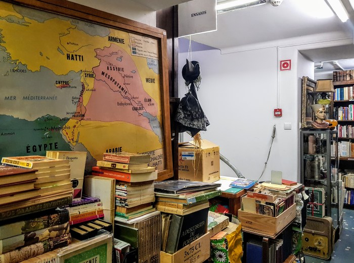 Em 2019, pude passar apenas vinte e quatro horas em Lisboa. Meu roteiro habitual de visitas a livreiros não pôde ser cumprido. Além da Bertrand e da Ferin, onde entrei somente para ver as novidades, respirar o ambiente, ter certeza de que essas duas velhas amigas estavam bem — preocupação inútil, pois elas seguirão existindo quando eu desaparecer — estive em um sebo apenas.