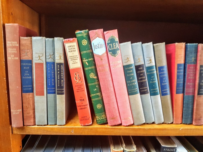 A primeira livraria a aparecer é a Bizantina. Na última vez em que lá estive, fiquei maravilhado, porque vi em uma prateleira a primeira edição inglesa de Justine, de Lawrence Durrell, que tenho em casa. Há muitos anos, retirei da estante de meu pai, no Rio, o seu exemplar e nunca o devolvi. Nem gosto particularmente do romance, mas há algo de lúdico no volume: a grossura e o cheiro do papel, a textura da capa. Sobretudo, há a minha constante ingenuidade de achar surpreendente ver em um sebo edições que já possuo. Nunca falha, sempre fico feliz quando isso acontece.