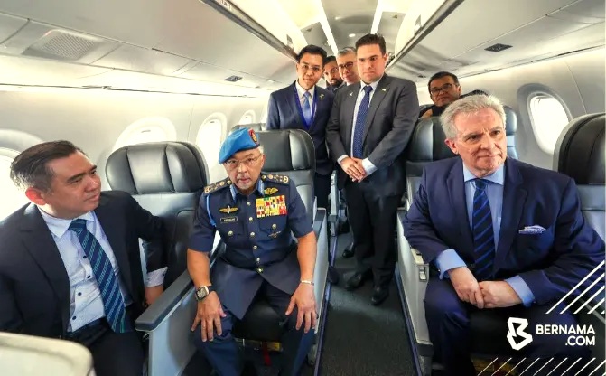 O rei da Malásia visitaria o E195-E2 durante a Exposição. O avião da EMBRAER voou do Brasil até Langkawi e trouxe o sucesso habitual à companhia brasileira. O rei subiu ao avião. Sentou-se primeiro na cabine, ao lado do piloto. Depois, como passageiro. A agência oficial de notícias da Malásia registrou o momento em que o monarca, em trajes militares, e eu sentamo-nos cada um de um lado do corredor do E195-E2. Ao se despedir de mim o rei disse, em português, com ar contente: “Obrigado”.